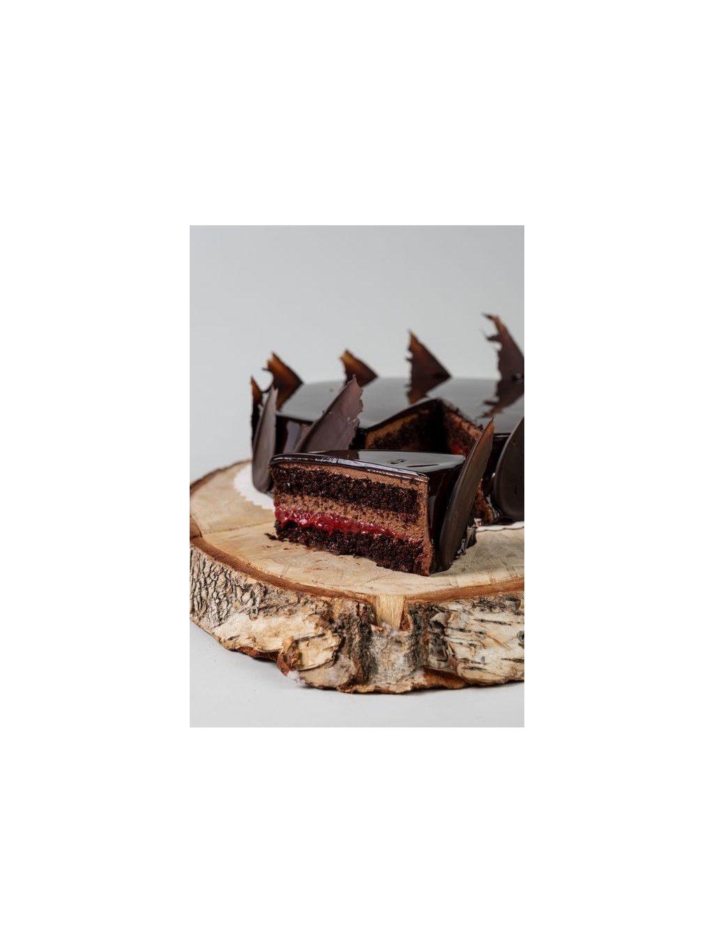 Chocolate cake with raspberry gel filling.
