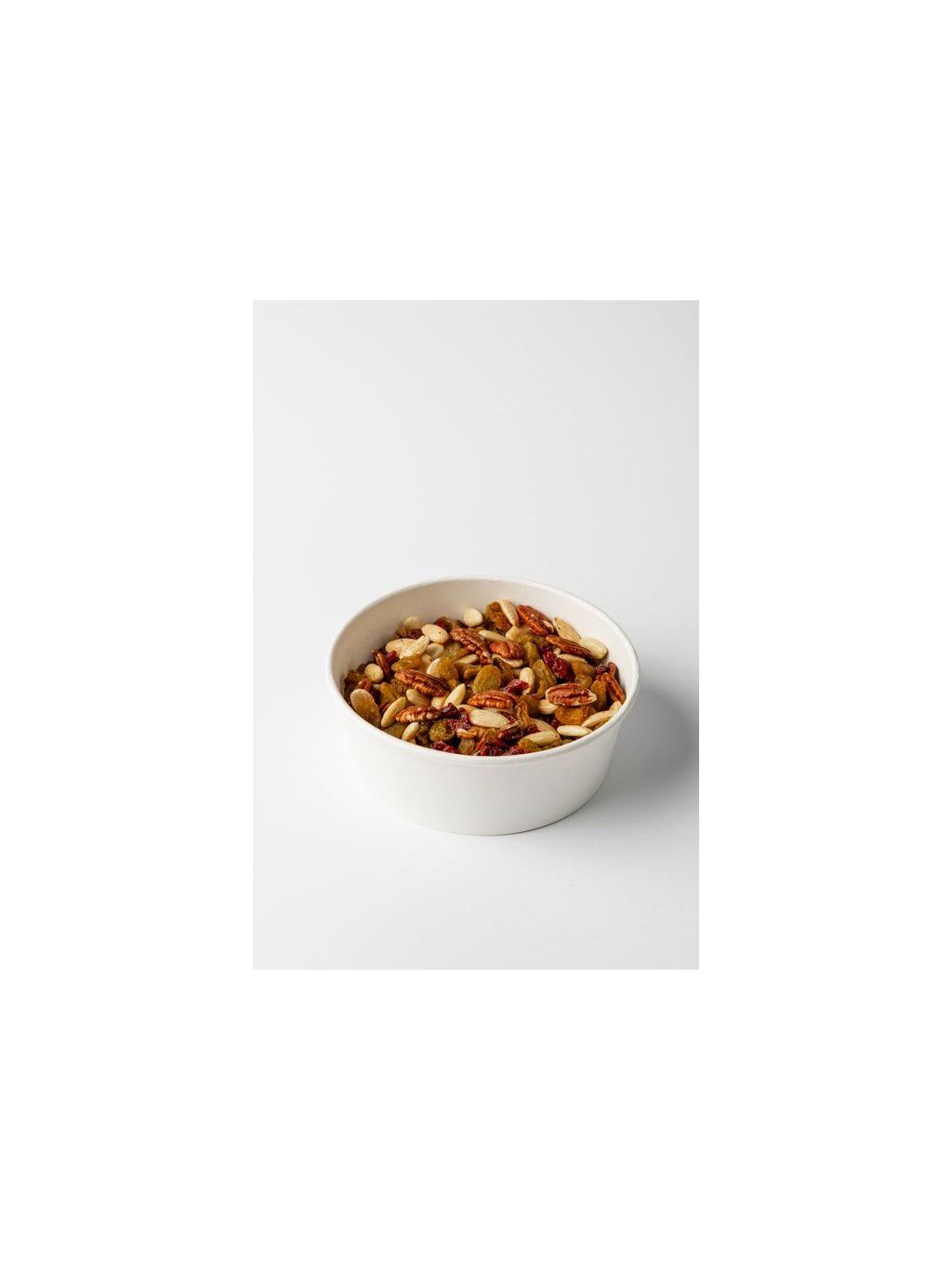 Ingredients: blanched almonds, large cranberries, pecans, and golden raisins.