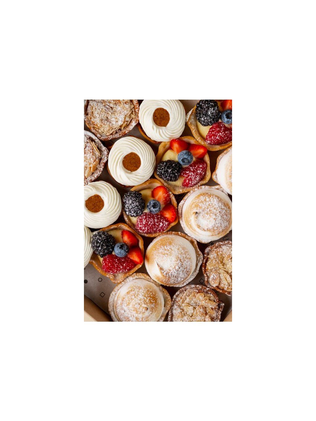 4x lemon meringue, 4x redberries, 4x almond, 4x pecan with whte chocolate mousse